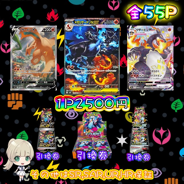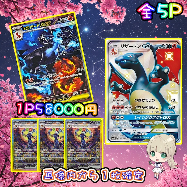 ご覧頂きありがとうございます❤ ミラクル公式ガチャ会員登録で500ptプレゼント♡ 是非ご覧になってください! https://www.miracle-gacha.jp/ 口数 ☘ 全8パック 金額 ☘ ¥80000 パック内容 ☘ 画像内から1枚確定 当たりは4口 MリザードンEX(X)【UR】{089/080} [XY] MリザードンEX(Y)【UR】{088/080} [XY] MリザードンEX(X)【-】{011/072} [その他] メガリザードンXex【MUR】{116/080} [M2] ハズレはメガリザードンXex【SAR】{110/080} [M2]4口 購入制限 ☘なし ⚠️注意事項⚠️ ❣画像内確定は画像に記載されているカードから必ず1枚出る仕様です。 全口購入すると必ず画像内の全てのカードが出ます。 ❣送料は商品代金と別途¥280でヤマト運輸のネコポスで発送いたします。 ❣発送は水濡れ、折れなどを対策した上でご入金確認の2-3日後に発送致します。 ❣こちらのパックは性質上当たりもハズレもあります。 ❣できる限り傷の少ない物、無いものを選んでいますが中には初期傷、初期線、白かけのあるカードが封入されている場合もございますのでご了承ください。 ❣郵送事故に関しましては保証致しかねますができる限り発送業者と連携し対応致します、 発送通知があったにも関わらずお品物が届かないお客様は当店までご連絡ください。 ❣クレジットカード不正利用の疑いがある場合はメールにてご連絡またはキャンセルさせていただく場合がございます。 ❣返品交換などはお受け出来ませんので、ご理解いただいた上でのご購入お願いいたしますm(__)m