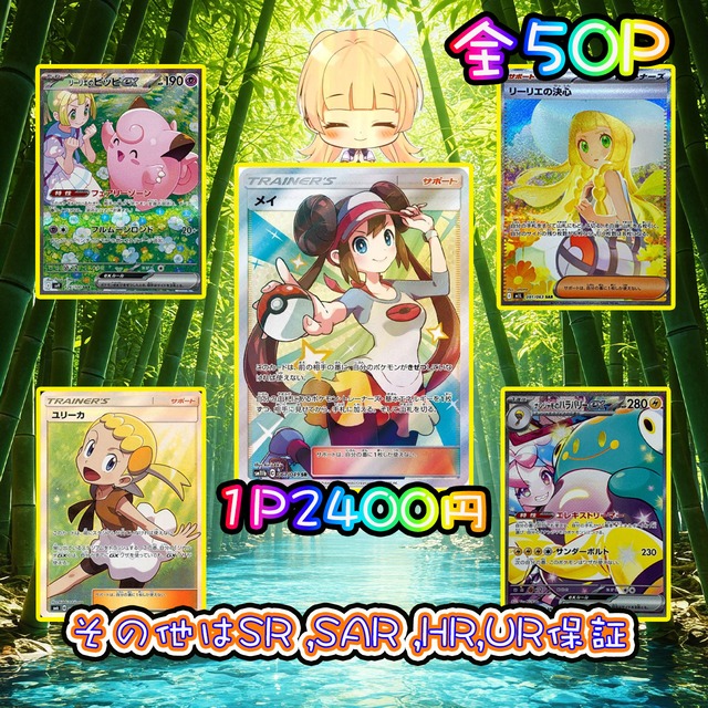 ご覧頂きありがとうございます❤ ミラクルガチャリニューアル記念 会員登録で500ptプレゼント♡ 是非ご覧になってください! https://www.miracle-gacha.jp/ 口数 ☘ 全50パック 金額 ☘ ¥2400 パック内容 ☘ 当たりは画像内5口 メイ【SR】{067/049} [sm11b] リーリエの決心【SAR】{091/063} [M1L] リーリエのピッピex【SAR】{126/100} [SV9] ナンジャモのハラバリーex【SAR】{125/100} [SV9] ユリーカ【SR】{102/094} [sm6] その他45口はSR,SAR,HR,UR保証 購入制限 ☘なし ⚠️注意事項⚠️ ❣送料は商品代金と別途¥280でヤマト運輸のネコポスで発送いたします。 ❣発送は水濡れ、折れなどを対策した上でご入金確認の2-3日後に発送致します。 ❣こちらのパックは性質上当たりもハズレもあります。 ❣できる限り傷の少ない物、無いものを選んでいますが中には初期傷、初期線、白かけのあるカードが封入されている場合もございますのでご了承ください。 ❣郵送事故に関しましては保証致しかねますができる限り発送業者と連携し対応致します、 発送通知があったにも関わらずお品物が届かないお客様は当店までご連絡ください。 ❣クレジットカード不正利用の疑いがある場合はメールにてご連絡またはキャンセルさせていただく場合がございます。 ❣返品交換などはお受け出来ませんので、ご理解いただいた上でのご購入お願いいたしますm(__)m