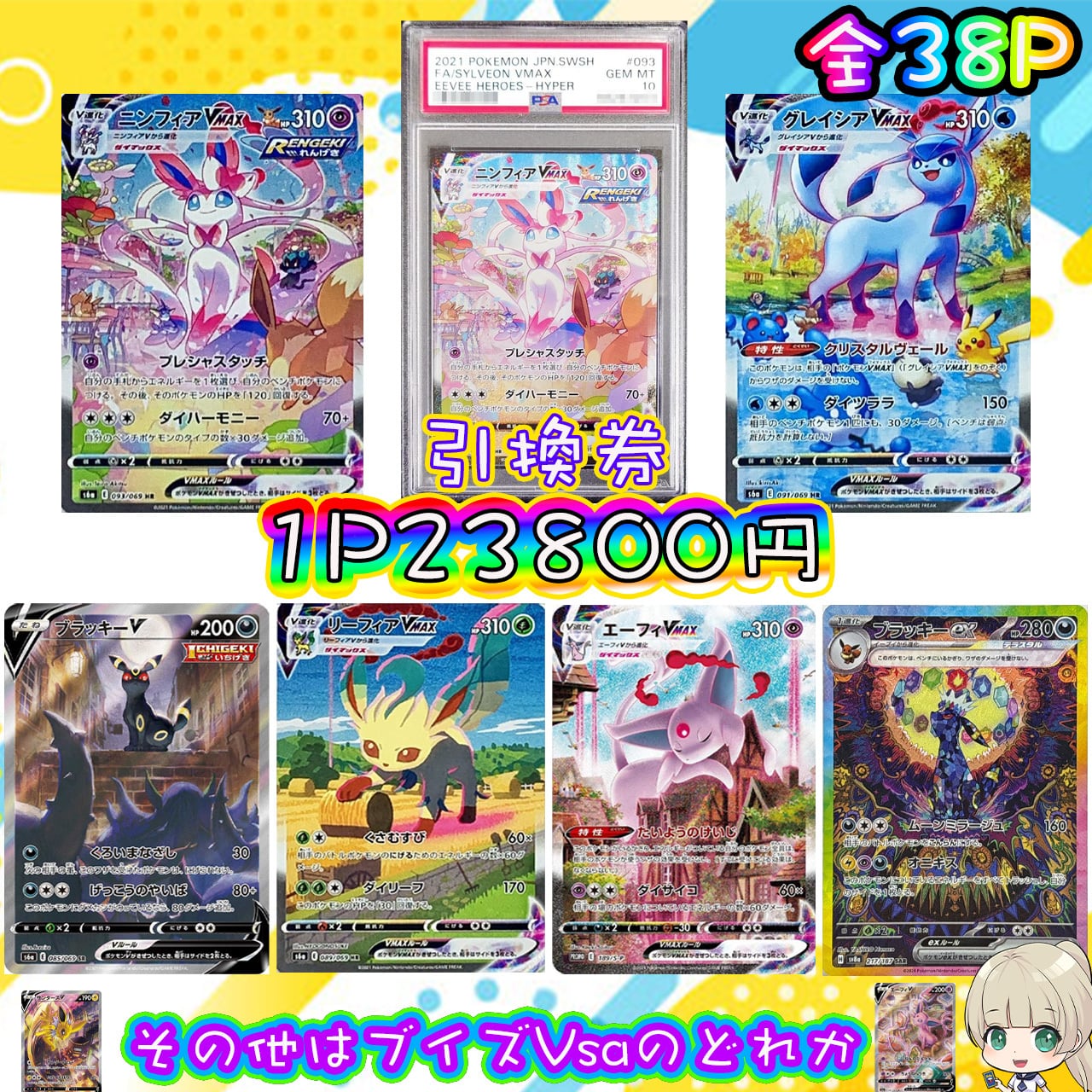※PSA10ニンフィアVMAXは引換券となりますので当たった方はメッセージにお名前と引換券のお写真をお送りください。