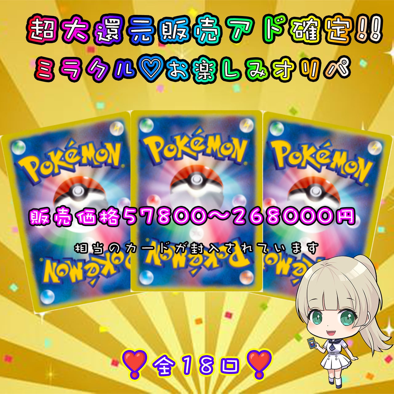 販売価格57800〜268000(大手カードショップ参考)のカードが18口になります!
