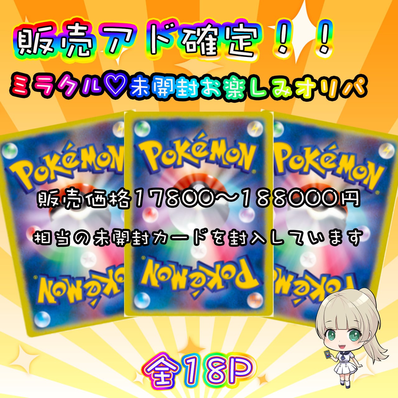 販売価格17800〜188000(大手カードショップ参考)のカードが18口になります!